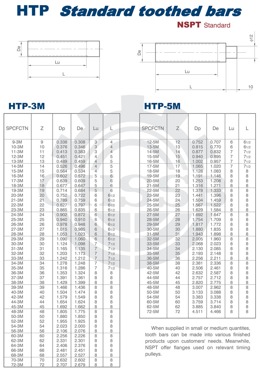 產(chǎn)品范圍: 美標(biāo)/歐標(biāo):(HTD3M/HTD5M) 英制尺寸產(chǎn)品(適用于美標(biāo)市場) 公制尺寸產(chǎn)品(適用于歐標(biāo)市場) 圓弧齒HTD齒棒、圓弧齒、STD同步帶輪、圓弧齒齒棒